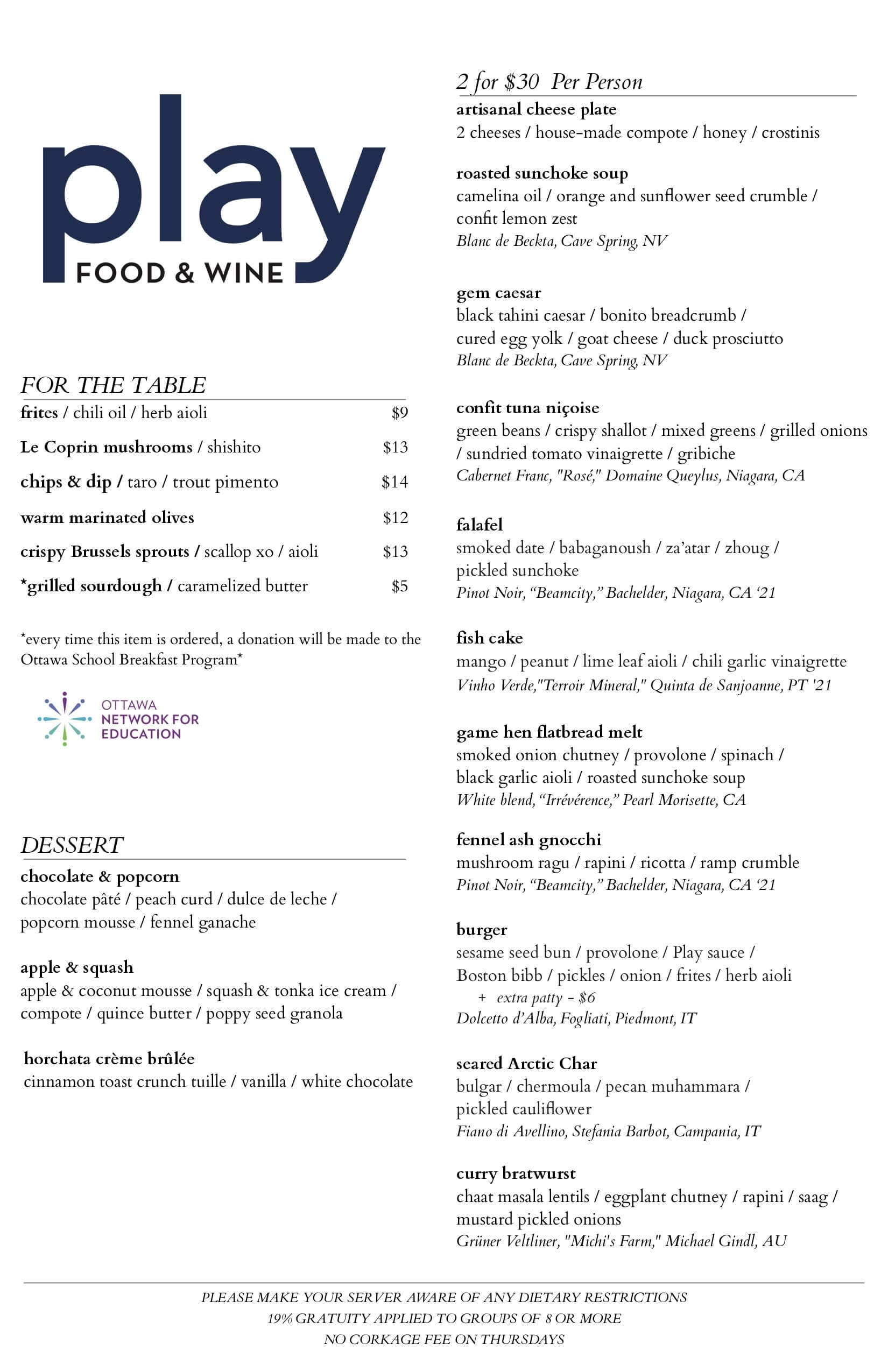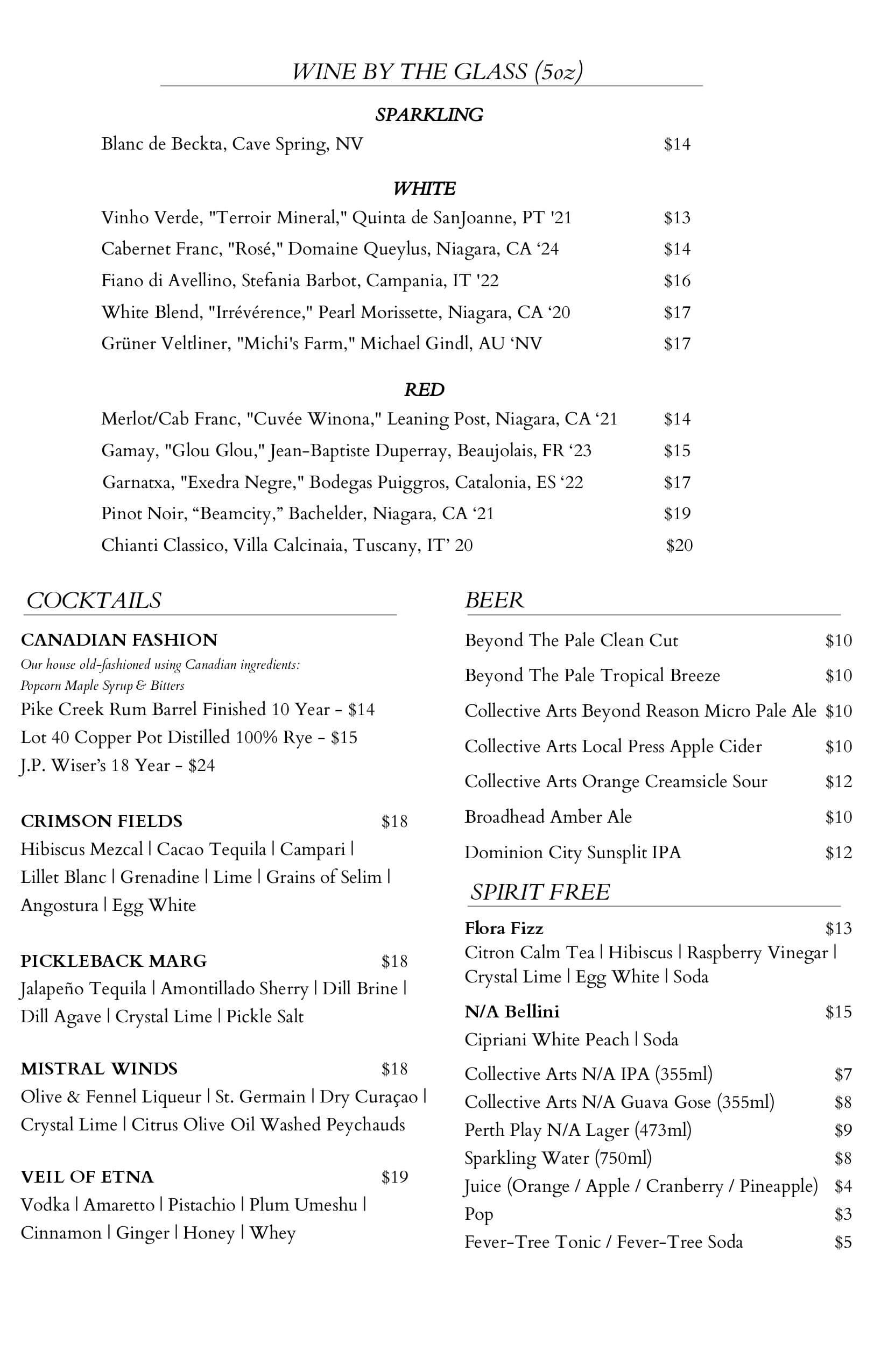 Our menus are a celebration of Canadian ingredients, with modern techniques and a deep respect for the land. Prepared with care in our open-concept kitchen overlooking our second floor dining room and kitchen bar. Whether you’re indulging in a meal for yourself or sharing with others, our diverse selection offers a variety of sizes and options.